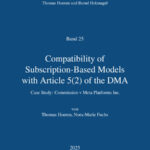 At the intersection of data protection and digital competition law, subscription-based models – also known as “Pay or Consent” – test the limits of user autonomy and regulatory coherence. The study shows that the DMA’s notion of “specific choice” mirrors GDPR consent, challenging the European Commission’s approach. Drawing on case law, legislative history, and regulatory practice, it clarifies that gatekeepers can comply with a subscription-based model without undermining user rights or innovation.