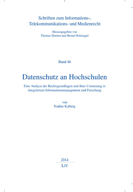 ISBN 978-3-643-12155-4 Band-Nr. 46 Jahr 2014 Seiten 360 Bindung broschiert Reihe Schriften zum Informations-, Telekommunikations- und Medienrecht Datenschutz an Hochschulen