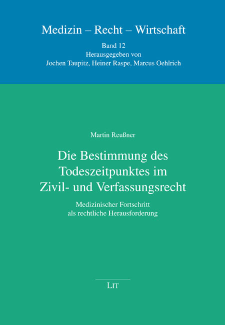 ISBN 978-3-643-12564-4 Band-Nr. 12 Jahr 2014 Seiten 160 Bindung broschiert Reihe Medizin – Recht – Wirtschaft Die Bestimmung des Todeszeitpunktes im Zivil- und Verfassungsrecht