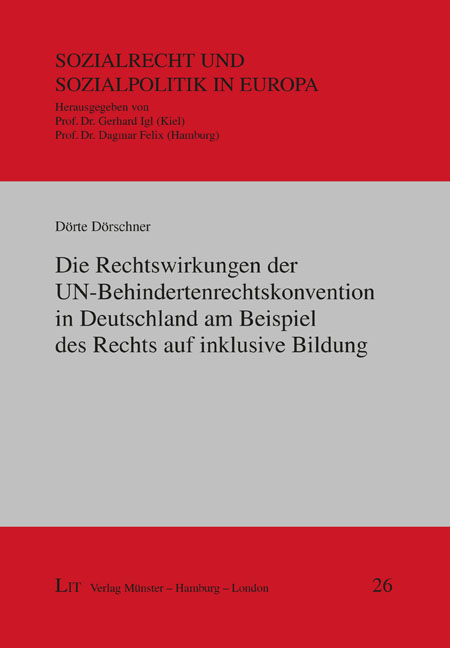 ISBN 978-3-643-12472-2 Band-Nr. 26 Jahr 2014 Seiten 296 Bindung broschiert Reihe Sozialrecht und Sozialpolitik in Europa Die Rechtswirkungen der UN-Behindertenrechtskonvention in Deutschland am Beispiel des Rechts auf inklusive Bildung