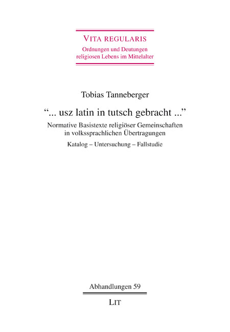 ISBN 978-3-643-12484-5 Band-Nr. 59 Jahr 2014 Seiten 456 Bindung broschiert Reihe Vita regularis – Ordnungen und Deutungen religiosen Lebens in Mittelalter und Früher Neuzeit. Abhandlungen