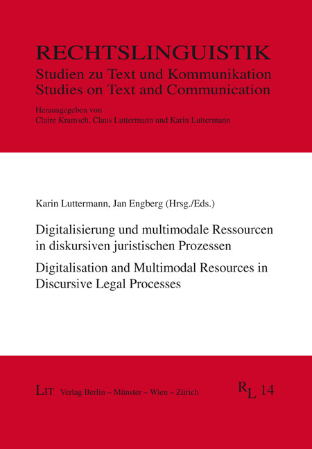 ISBN 978-3-643-15496-5 Band-Nr. 14 Jahr 2025 Seiten 324 Bindung gebunden Reihe Rechtslinguistik Digitalisierung und multimodale Ressourcen in diskursiven juristischen Prozessen / Digitalisation and Multimodal Resources in Discursive Legal Processes